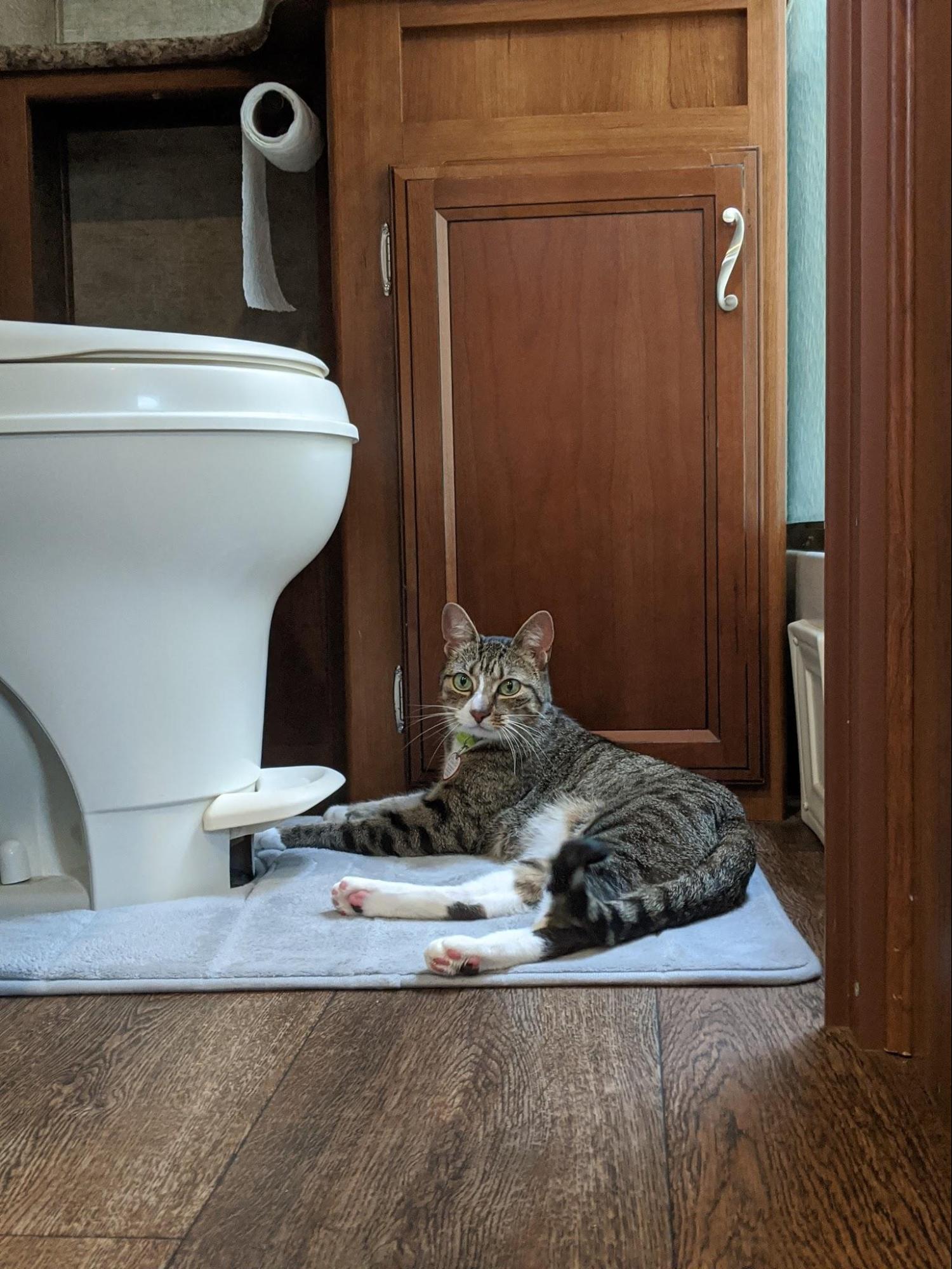 If you choose this option, make sure the drain is covered so kitty isn’t sending litter into your grey water tank. That could lead to a blockage. I would only recommend using this option if you are one of those RVers who does not use the shower in your rig. Otherwise, you’ll have to be prepared to move it out of the way and clean the shower stall every time someone wants to shower. This could get annoying after the first week.