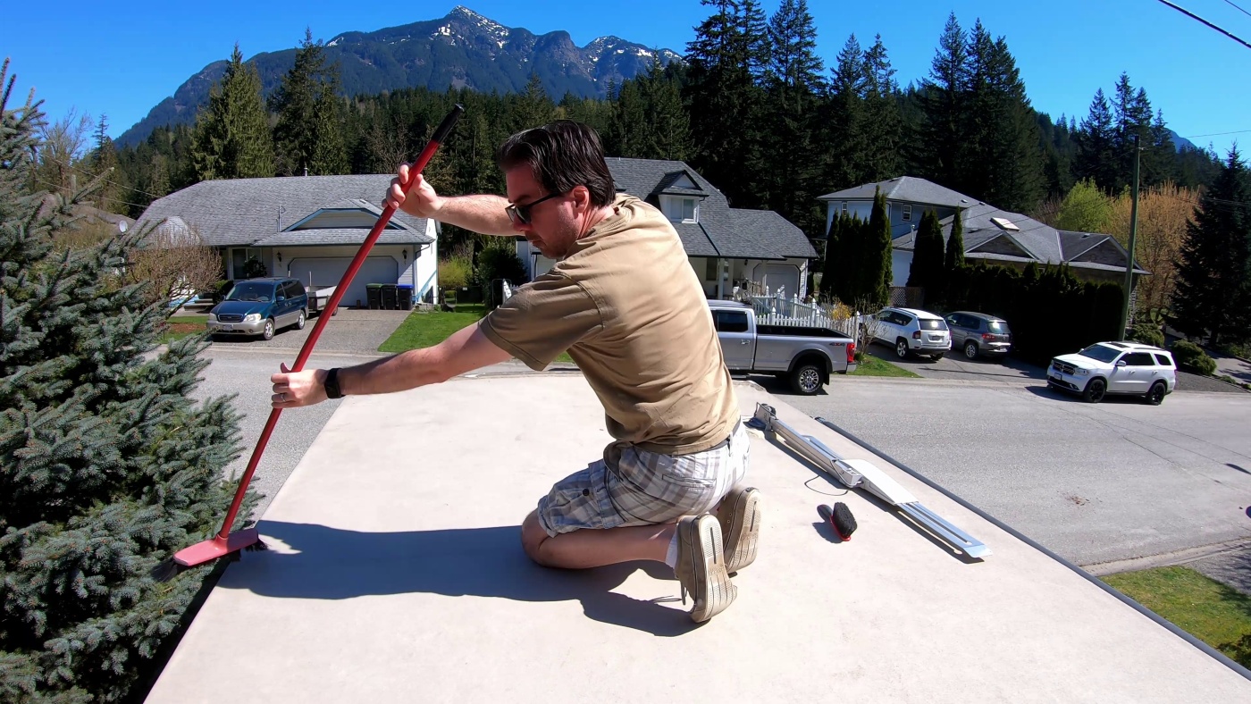 Over the last year we’ve cleaned our RV roof a handful of times. It’s not a particularly difficult job to do, but it’s definitely not a job we want to do every week either. It’s definitely more pleasant than clearing snow off the top of the RV! This spring we have decided to instal solar panels on the top of our RV, so we had to make sure the roof is in tip top shape beforehand.