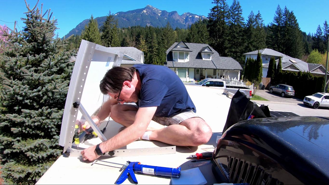 - Screw them in place. This is the scariest part of this project. Adding holes into an RV roof, whether intentional or not, is always a bit nerve racking. Jay followed what the manufacturers did with everything else screwed into the roof, which was to use a crapload (that’s the official term) of dicor. Around every screw, self-leveling dicor was used to cover the screw. It forms a seal, should make it waterproof (assuming it was applied correctly *fingers crossed!), and it will be all good. Jay really loved the self-leveling dicor. His words: “It's great! You can make a total mess of it and then it'll just flatten out.”