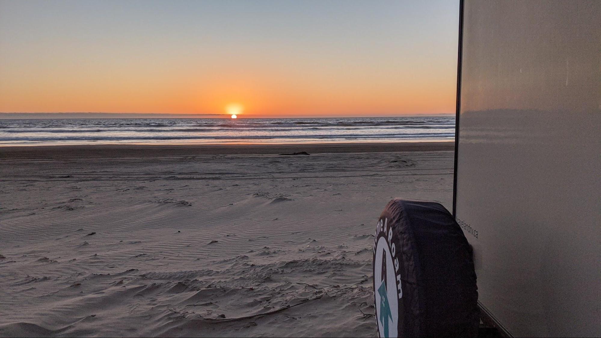 As it turns out, we got lucky with the position of our trailer on the beach. We copied what others were doing and positioned our door facing the dunes instead of the water. That way, we could still come in and out of the trailer in high winds without risking blowing the door away and getting blasted with sand. It also positioned our large dinette window toward the ocean so we could still admire the view even from inside. - The sand: It gets into every nook and cranny of your camper. We came prepared with an outdoor broom to sweep off our shoes and feet before stepping into the trailer. This limited the amount of sand that got tracked in, but in no way eliminated it. Be prepared to do a deep clean after leaving.
